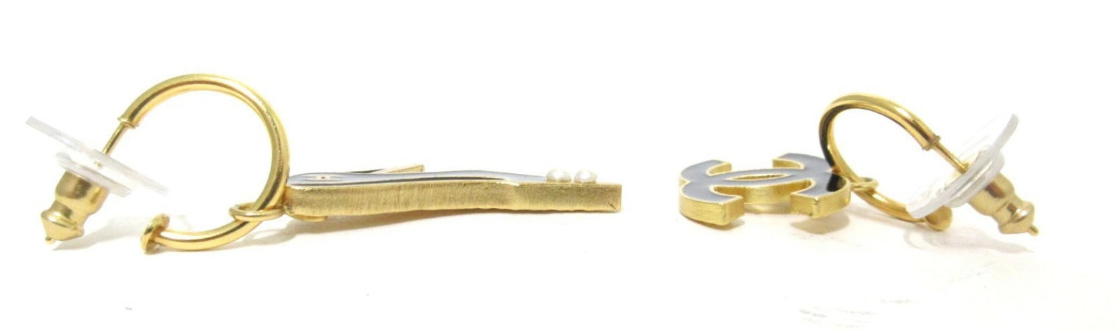 Chanel Coco Mark Heel Logo Earrings, Black/Gold, 02A