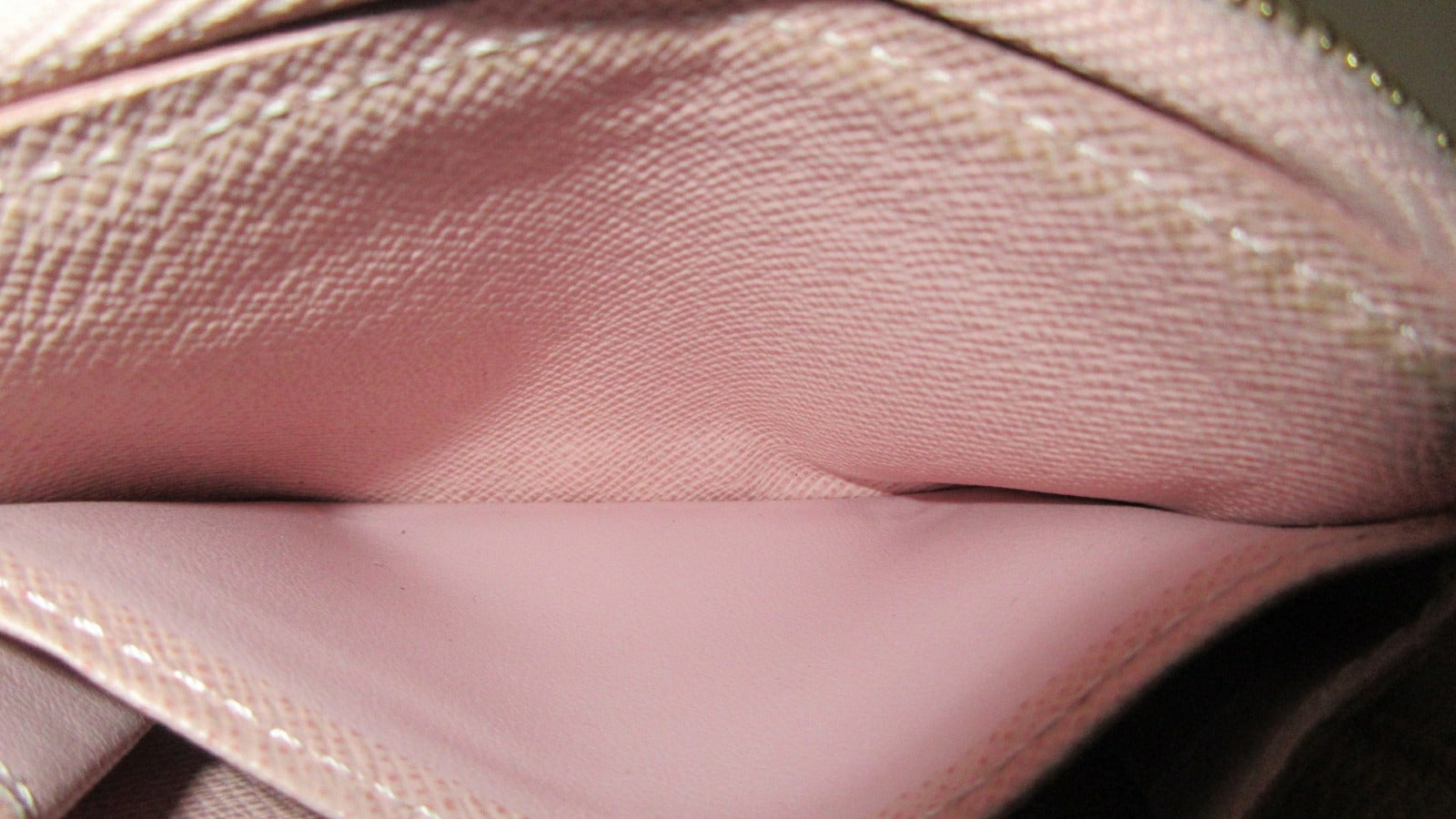 - Product Condition: Rank B – There is some scuffing on the edge of the wallet. There is slight dirt overall. There is dirt on the fabric around the zipper hardware. There are scuffs and dirt on the leather on the inside. There are small scratches and peeling on the zipper hardware.